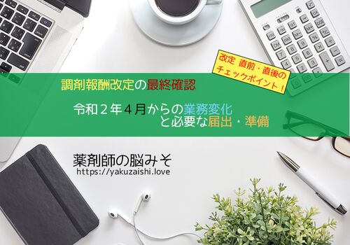 みなさん、調剤報酬改定の準備は順調でしょうか? 令和2年度診療報酬改定が施行される2020年4月1日が目前に迫ってまいりました。 (この記事は2020年3月29日に作成しています) 4月1日から何が変わるのか? 点数は?ルールは?届出は?経過措置はいつまで? …
