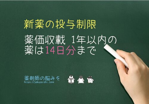 新薬の処方日数制限についての記事です。 投与制限の例外についてとその対象となる医薬品についてまとめています。 2020年11月18日に薬価収載された医薬品のうち、エクロックゲル5%、エナロイ錠2mg/4mg、ジセレカ錠100mg/200mg、ゼジューラカプセル100mg、リ…